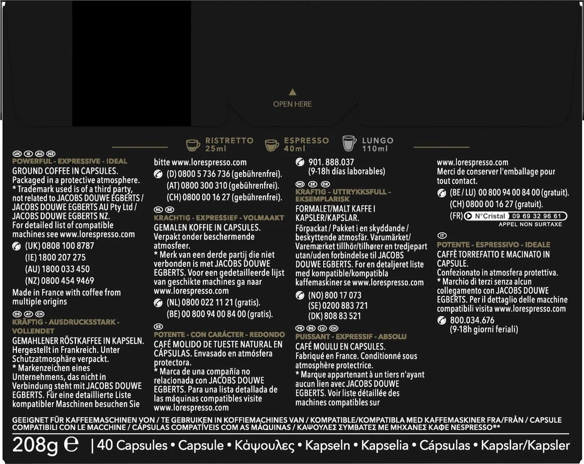 L’OR Espresso Ristretto Koffiecups – Intensiteit 11/12 – 4 X 40 Capsules